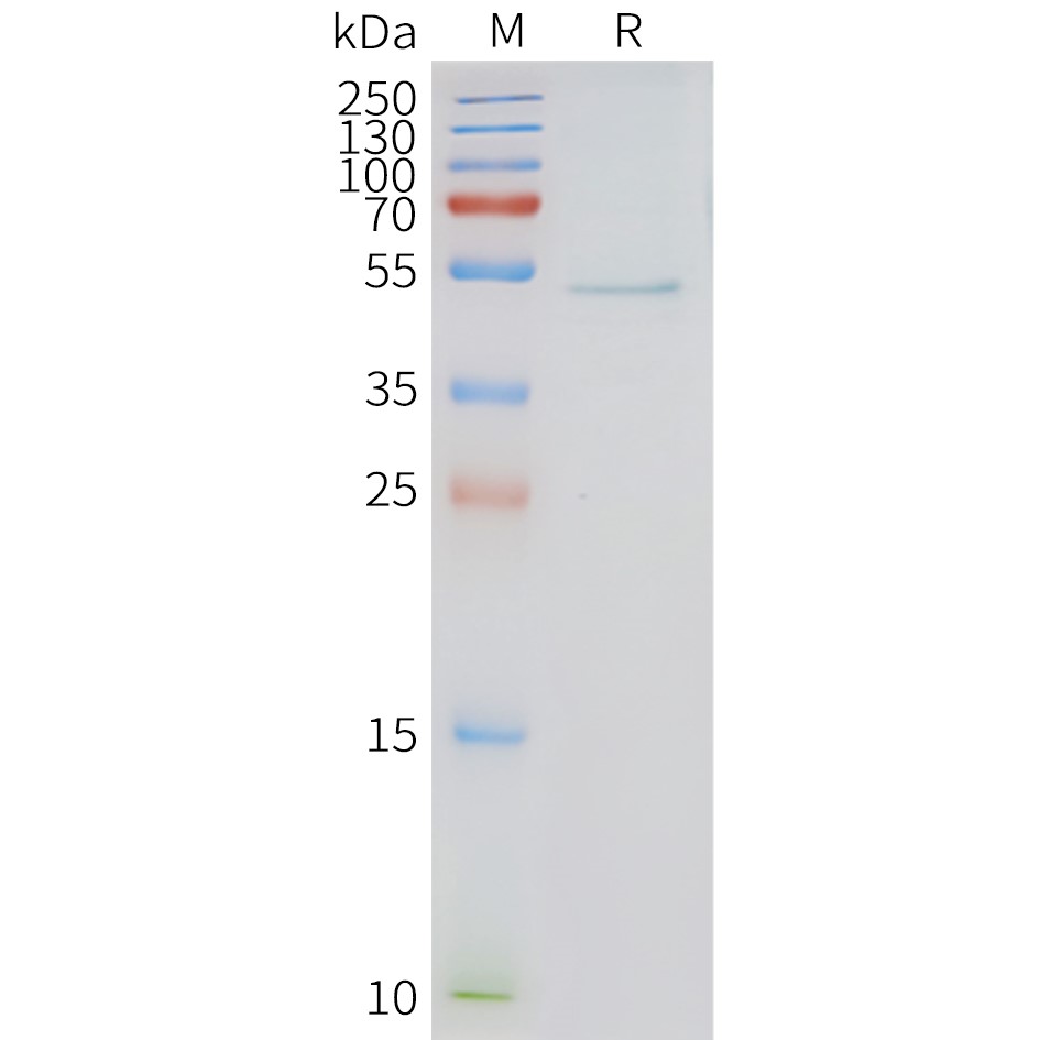 储存和运输:    Store at -20°C to -80°C for 12 months in lyophilized form. After reconstitution, if not intended for use within a month, aliquot and store at -80°C (Avoid repeated freezing and thawing). Lyophilized proteins are shipped at ambient temperature.
