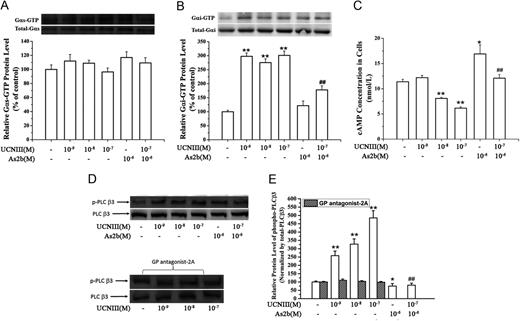 The levels of activated GTPbound Gαs and Gαi proteins were measured using their corresponding assay kits [2, 27]. Whole-cell lysates were incubated for 1 h with an anti-active Gαi antibody and protein A agarose beads. Activated Gαi was quantified by means of western blotting using an anti-Gαi antibody. As a control for sampling errors, total levels of the Gαs and Gαi proteins were also detected.