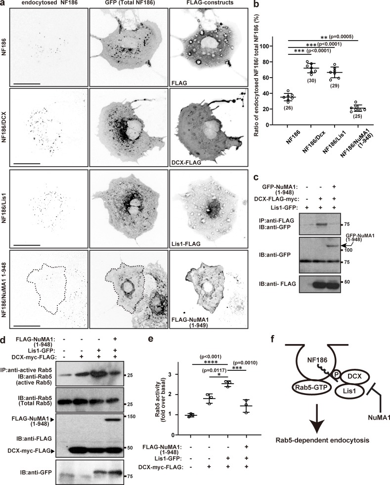 NuMA1 inhibits endocytosis of NF186 by disrupting the interaction between Lis1 and DCX.
