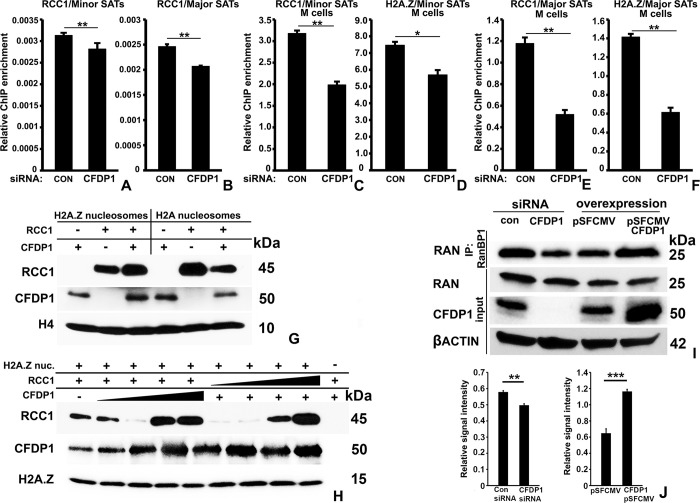 CFDP1 regulates RCC1 binding to minor and major satellite repeats.